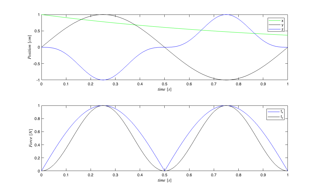load CovariateSample.mat; %load position and force covariates cc=CovColl({position,force}); cc.setMaxTime(lengthTrial); figure; cc.plot;