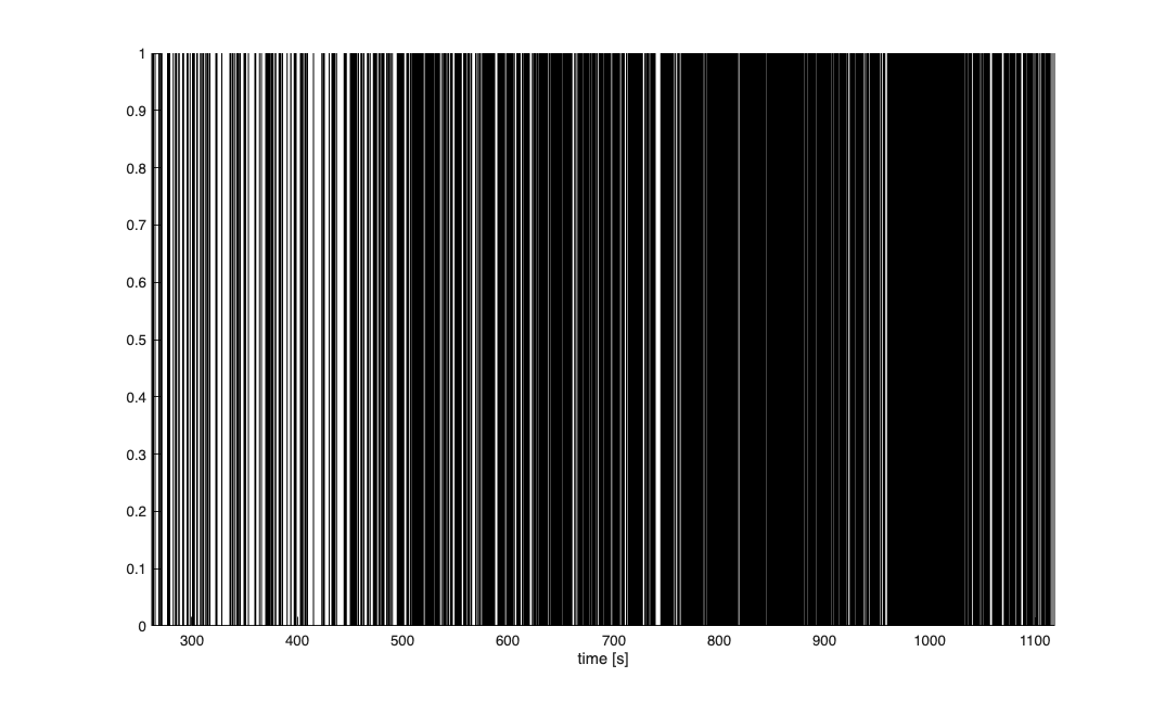 % load the data; washout1 = importdata(fullfile(mEPSCDir,'washout1.txt')); washout2 = importdata(fullfile(mEPSCDir,'washout2.txt')); sampleRate = 1000; % Magnesium removed at t=0 spikeTimes1 = 260+washout1.data(:,2)*1/sampleRate; %in seconds spikeTimes2 = sort(washout2.data(:,2))*1/sampleRate + 745;%in seconds nst = nspikeTrain([spikeTimes1; spikeTimes2]); time = 260:(1/sampleRate):nst.maxTime;