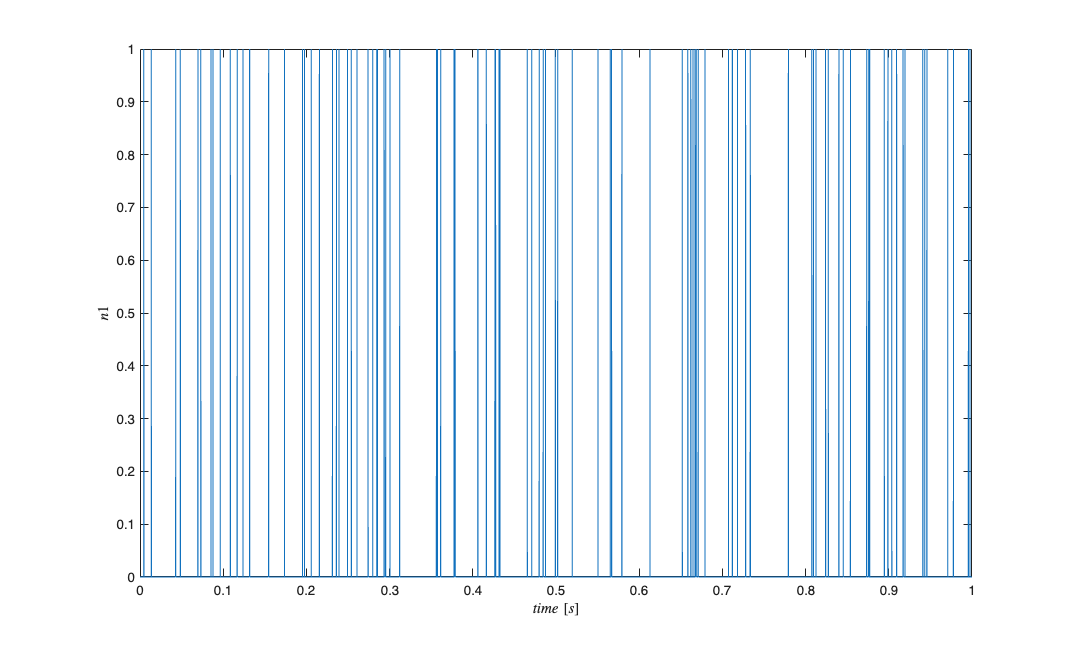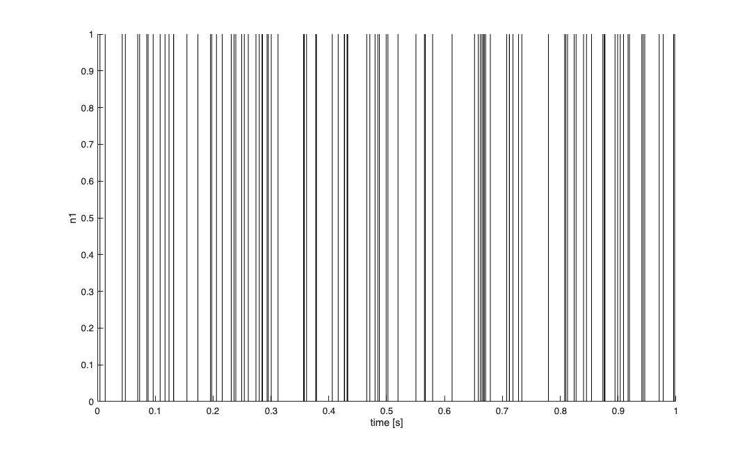 spikeTimes = sort(rand(1,100))*1; spikeTimes = unique(round(spikeTimes*10000)./10000); %round off; nst=nspikeTrain(spikeTimes,'n1',.001,0,1); figure; nst.plot;